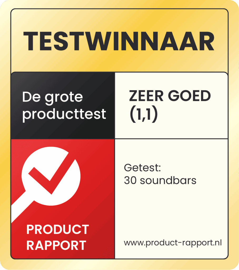 Simpel: de soundbar combineert een top geluidskwaliteit, makkelijke bediening en echte aanpasbaarheid en dat allemaal in een strak design voor een betaalbare prijs. Geen enkel ander model presteerde in alle tests zo constant goed. En het beste is: dankzij de innovatieve technologie en de robuuste afwerking is de testwinnaar ook op de lange termijn een waardevolle investering.