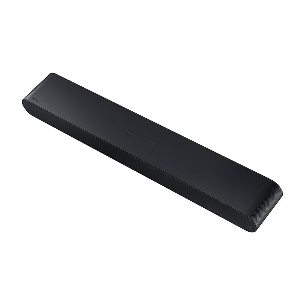 De soundbar is langwerpig en slank, waardoor het geluid goed tot zijn recht komt.